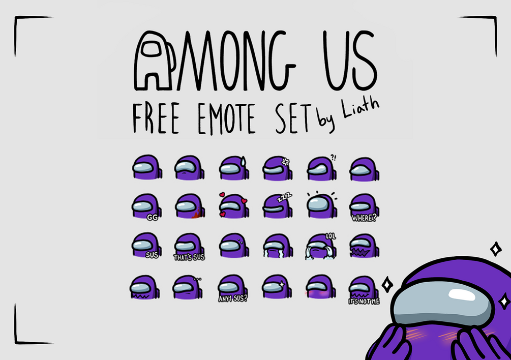 I used to play a lot of Among Us and just had to make a set of cute fan-made/unofficial emotes to use on Twitch or Discord! Considering I don't play the game myself any more, I don't plan to update these with any new colors or additions, but I hope the original sets will be useful to you! Feel free to edit them, just make sure to still credit me.