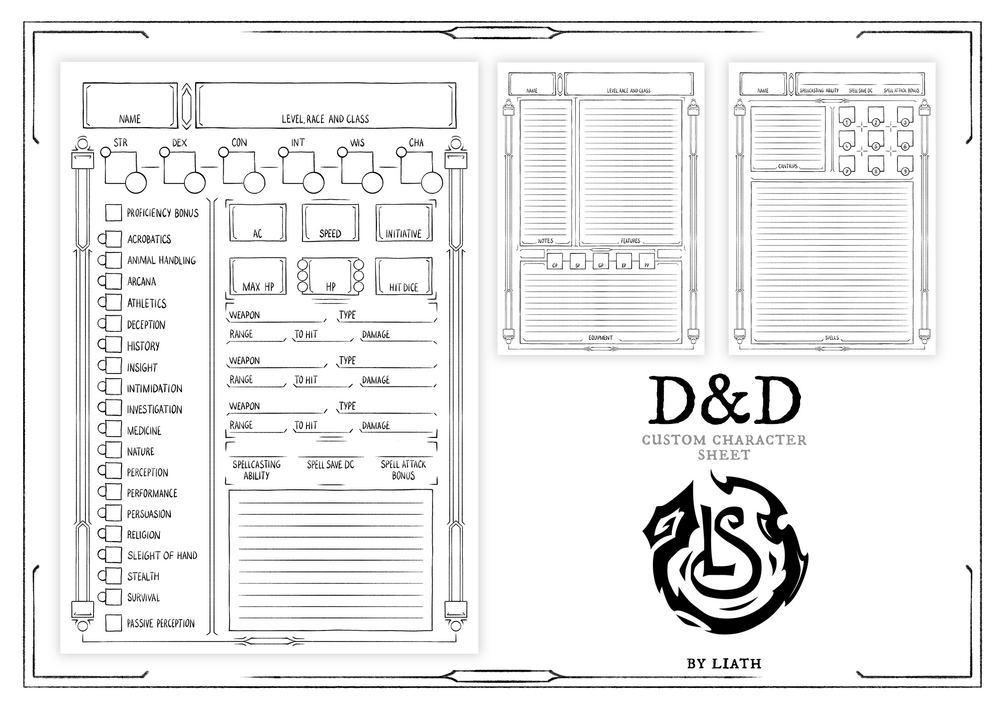 Dungeons & Dragons 5E - Custom Sheet - Standard Set - Oversized Theme - B&W