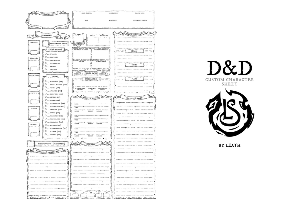 Dungeons & Dragons: Torn Ink Standalone Sheet (B&W)