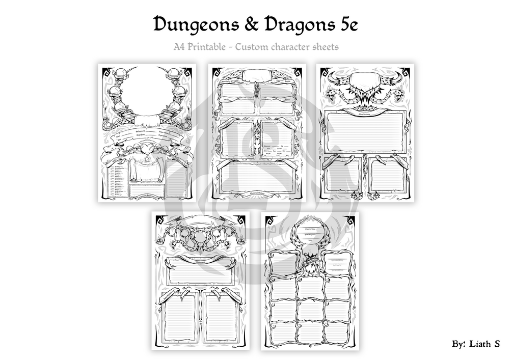 Dungeons & Dragons 5E - Custom Character Sheets - Standard Set - Abyssal Theme - Black and White